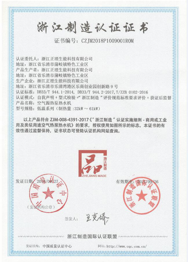浙江制造認證證書