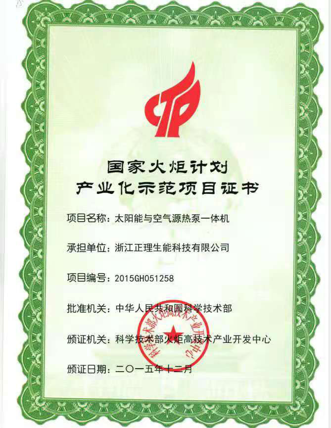 國家火炬計劃產業化示范項目證書