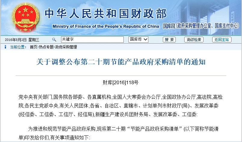 第二十期節(jié)能產(chǎn)品政府采購清單,生能再奪行···